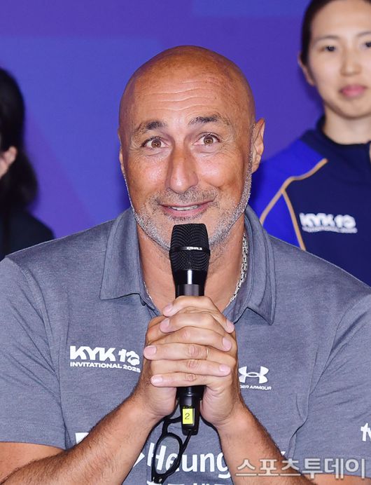 [인천=스포츠투데이 권광일 기자] 마르첼로 아본단자 감독이 16일 오후 인천 삼산월드체육관 보조경기장에서 열린 'KYK 인비테이셔널 2025' 미디어데이 행사에 참석해 인사말을 하고 있다. 2025.05.16. [스포츠투데이 권광일 기자 sports@stoo.com]