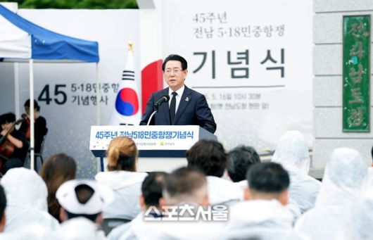 [스포츠서울|조광태기자] 전라남도는 16일 도청 김영랑문 앞 광장에서 제45주년 전라남도 5·18민주화운동 기념식을 열어 민주주의 위기상황에서 발현한 ‘5월 정신’의 가치를 되새겼다.