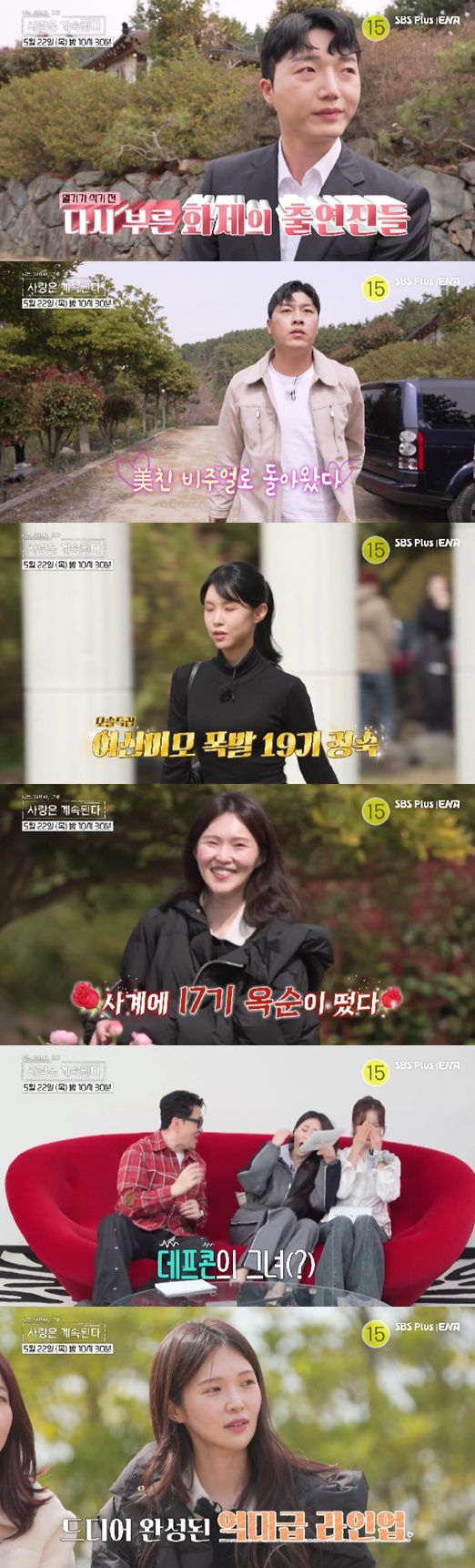데프콘은 "정말로 많은 분들이 만나고 싶었던 17기 옥순씨가 뜬다. 1등 신붓감 여섯분들과 신랑감으로 손색 없는 남자들이 사랑을 찾기 위해 거제도로 나왔다"라고 밝혔다.