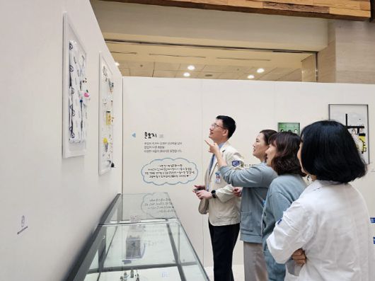 윤효지 작가는 현재도 치료를 이어가는 중이며, 수술과 염증 치료로 입퇴원을 반복하고 있지만 미술은 여전히 그녀에게 삶의 균형을 되찾게 해주는 중요한 도구로 남아 있다. ‘병원에서 생파’, ‘숲속 우물’ 등 그녀의 대표작들은 병원이라는 공간을 새롭게 해석한 작품으로, 감정의 진폭과 회복의 가능성을 동시에 보여준다. 또 다른 참여 환아인 A군(17세, 익명)은 지난 2024년 4월, 급성 골수성 백혈병 진단을 받고 항암치료 및 조혈모세포이식을 받았다. 현재 외래 진료를 이어가고 있는 그는 ‘소아혈액종양과 어벤져스’, ‘희망을 주는 20층 천사들’ 등 여러 작품을 통해 병원에서 마주한 의료진과 친구들에 대한 고마움을 담아냈다. 특히 ‘마음 지킴 삼총사’는 투병기간 동안 함께 울고 웃으며 힘이 되어준 사람들에 대한 감사를 표현한 작품으로, 많은 관람객들에게 깊은 인상을 남겼다.
