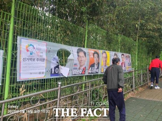 [더팩트ㅣ부산=박호경 기자] 부산에서 제21대 대통령 선거 관련 벽보가 훼손되거나 선거사무원이 폭행당하는 등 선거 방해 사건이 잇따르고 있다.