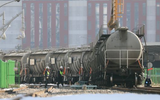 작년 12월 경기 의왕시 오봉역 인근에 시멘트 화차들이 정차해 있다. /뉴스1 |