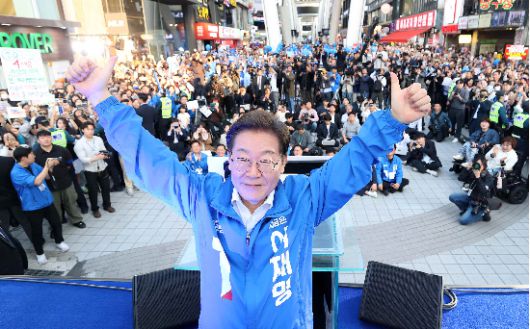 이재명 후보 지지율은 광주·전라(76%)와 인천·경기(55%), 서울(50%), 40대(73%), 50대(65%)에서 50%를 넘겼다. 김 후보는 대구·경북(48%)과 70대 이상(52%), 60대(45%)에서 40%를 넘겼다.