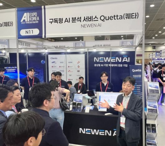 뉴엔AI는 이번 전시회에서 비정형 구어체 특화 AI 분석 모듈을 탑재한 구독형 AI 분석 서비스 '퀘타아이(Quettai)'를 처음 선보였다. 퀘타아이는 인스타그램, 유튜브, X, 커뮤니티, 카페 등 12개 사회관계망서비스(SNS) 채널과 온라인 플랫폼에서 하루 2200만건 데이터를 실시간 분석해 최신 트렌드와 인사이트를 제공한다.