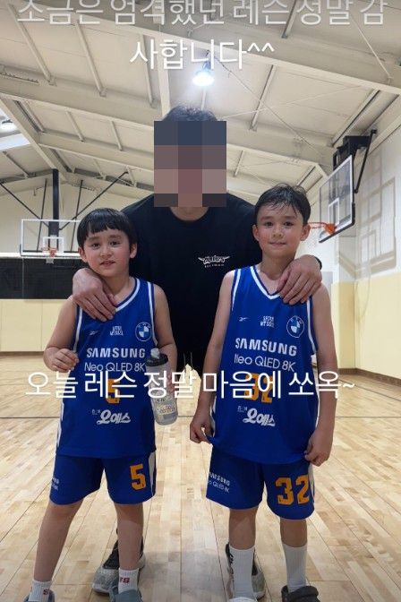 사진에는 샘 해밍턴의 아들 윌리엄과 벤틀리가 농구 수업 중인 모습이 담겼다. 두 사람은 운동을 열심히 한 탓인지 얼굴이 벌개진 채고 카메라를 응시하고 있어 눈길을 끈다.