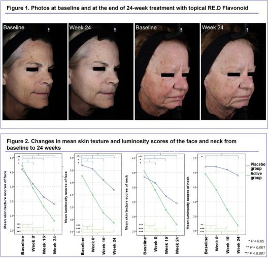 레드플라보노이드 24주 인체적용시험결과. 아모레퍼시픽 미국피부연구학회 발표 자료 발췌. |