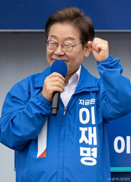 [군산=뉴시스] 조성우 기자 = 이재명 더불어민주당 대선후보가 16일 전북 군산시 구시청광장에서 열린 유세에서 연설하고 있다. (공동취재) 2025.05.16. photo@newsis.com /사진= |