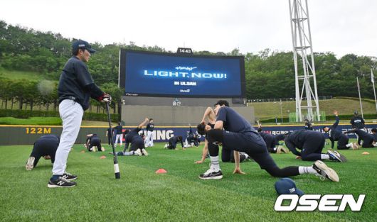 [OSEN=울산, 이석우 기자] 16일 울산 문수야구장에서 2025 신한 SOL 뱅크 KBO 리그 NC 다이노스와 키움 히어로즈의 경기가 열린다. 홈팀 NC는 최성영이, 방문팀 키움은 김선기가 선발로 출전한다. NC 다이노스 선수들이 대체 홈구장인 울산 문수야구장에 도착해 몸을 풀고 있다. 2025.05.16 / foto0307@osen.co.kr