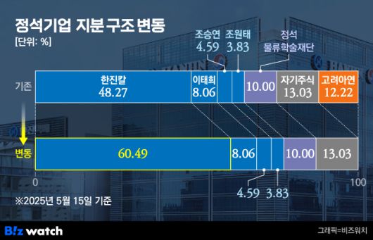 4년 만에 정석기업 주식을 되사온 주체는 한진칼이다. 한진칼은 대한항공의 지주회사로, 한진그룹 지배구조의 정점에 있다. 한진칼은 이번 주식 매입으로 정석기업 지분 60% 이상을 확보하며 안정적인 지배구조를 갖추게 됐다.