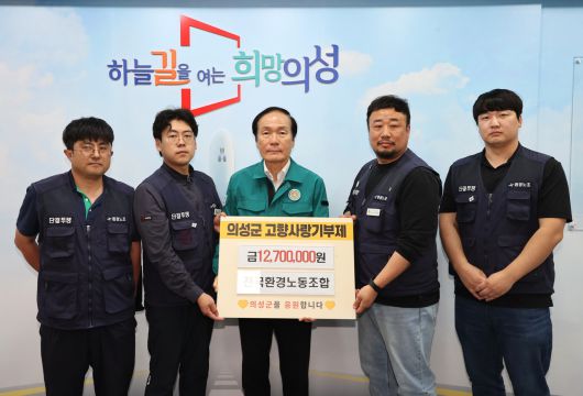 (의성=국제뉴스) 김충남 기자 = 전국환경노동조합(위원장 박진덕)이 초대형 산불로 피해를 입은 의성지역 주민들을 돕기 위해 의성군을 방문해 고향사랑기부금 1,270만원을 기탁했다. 전국환경노동조합은 2018년에 설립된 환경기초시설(민간위탁) 노동자 단체로 전국 18개 지부를 두고 있으며, 의성지부는 2023년에 설립되었으며 현재 의성군 환경사업소에 근무하는 근로자 26명이 가입되어 있다.