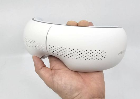 엔보우 NB50의 외형은 얼핏 보기에 마사지기보다는 마치 VR(가상현실) 헤드셋을 연상시킨다. 여기에 더해 무광 흰색으로 외부를 처리해 전반적으로 세련된 느낌을 준다.전면에 타공 처리를 했으며 내부 안구 접촉 부위를 개방형으로 디자인했다 / 출처=IT동아 |