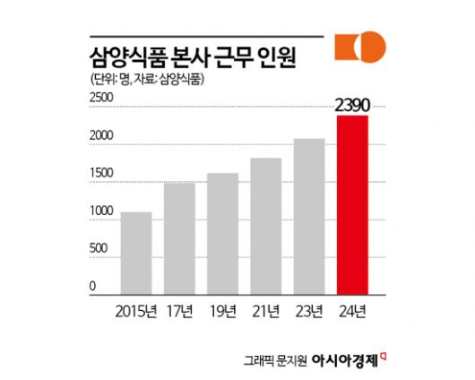 실제 삼양식품의 전체 임직원 수는 2015년 1100여명에서 올해 2390명으로, 10년 만에 두 배 이상 늘었다. 이전이 완료되면 삼양라운드스퀘어 등 서울지역 계열사 직원 400여명도 함께 입주할 수 있게 된다.