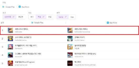 지난 15일 오전 10시에 출시한 세나 리버스는 원작 '세븐나이츠'의 리메이크 프로젝트다. 출시 하루 만에 구글 플레이와 앱스토어 양대 마켓 인기 1위를 기록하면서 원작 이용자와 신규 이용자 모두를 잡았다는 평가를 받고 있다. 7시간만에 애플 앱스토어 매출 1위를 달성하기도 했다.