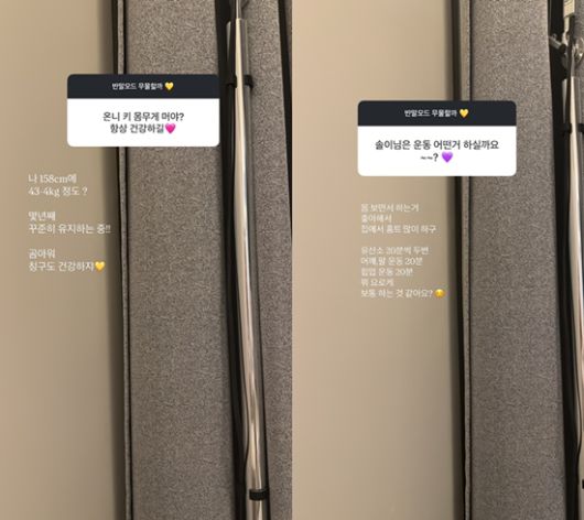 한 누리꾼은 이솔이의 키와 몸무게를 물어봤고 이솔이는 "158cm에 43~4kg 정도다. 몇 년째 꾸준히 유지하는 중"이라고 솔직하게 공개했다.