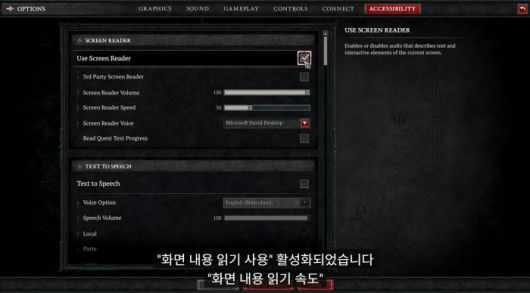 ▲ 디아블로 IV '손쉬운 사용' 기능과 개발 과정을 담은 영상 - 화면 내용 읽기