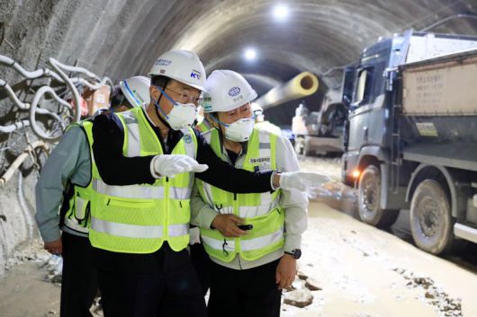 [파이낸셜뉴스] 이성해 국가철도공단 이사장(왼쪽)이 16일 경기도 안양의 월곶~판교 복선전철 6공구 터널 건설현장을 찾아 공사 진행 상황과 작업구·터널 등 주요 시설물의 안전 위험 요인을 점검하고 있다.