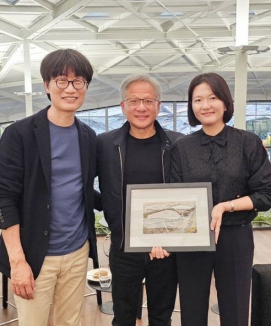 이해진(왼쪽) 네이버 글로벌투자책임자(GIO)와 최수연(오른쪽) 네이버 대표가 지난해 6월 25일 젠슨 황 엔비디아 창업자 겸 최고경영자와 찍은 사진. 네이버 인스타그램 |