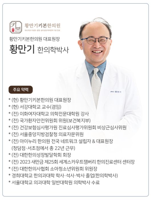 황만기키본한의원 황만기 대표원장(한의학 박사)은 2000년 한의사 면허 취득 후 25년 동안 소아청소년 '키 성장’과 남녀노소 모든 연령의 골절‧골다공증 등 '뼈 건강’ 분야를 특화시켜서 진료 중이다.