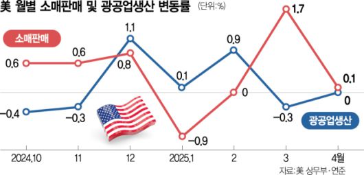 미국의 제조업과 상품 판매 분야에서 둔화 그림자가 짙어졌다. 관세발 경제 충격 이후 도널드 트럼프 미국 대통령의 관세정책 추진 강도와 수사는 부드러워졌지만 실물경제에서는 경고음이 커지는 양상이다. 소매판매·산업생산 등 주요 지수에서 둔화세가 뚜렷해지는 가운데 월마트 등이 가격 인상에 나서는 등 인플레이션 공포는 갈수록 커지고 있다.