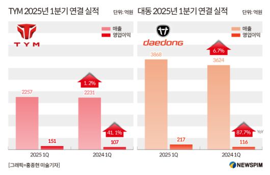 TYM은 2025년 1분기 매출 2257억 원, 영업이익 151억원을 기록했다. 매출은 전년 동기 대비 1.1%, 영업이익은 41.1%가 각각 증가했다.