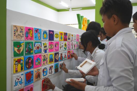 KB국민은행은 캄보디아 댐낙엠필 중학교에 위치한 KB라이브러리에 미니 캔버스 액자 700여 점을 선물했다고 16일 밝혔다.