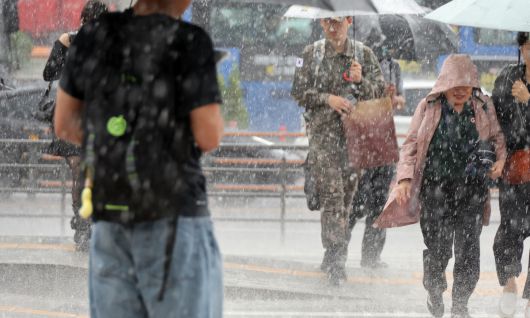 이날 오전 8시부터 현재까지 강수량은 20~50㎜며, 이날까지 예상 강수량은 5~40㎜(많은 곳 60㎜ 이상)다.