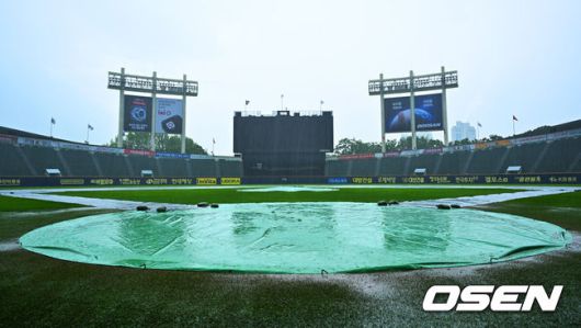 [OSEN=잠실, 민경훈 기자] 16일 서울 잠실야구장에서 ‘2025 신한 SOL Bank KBO리그’ LG 트윈스와 키움 히어로즈의 경기가 열릴 예정인 가운데 그라운드에 비가 내리고 있다.이날 LG는 손주영, KT는 쿠에바스를 선발투수로 내세운다.잠실구장에 비가 내리고 있다. 2025.05.16 / rumi@osen.co.kr |