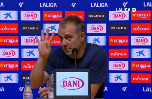 [OSEN=강필주 기자] 한지 플릭(60) 바르셀로나 감독이 손가락 4개를 펴 보였다. 레알 마드리드엔 굴욕이었다.