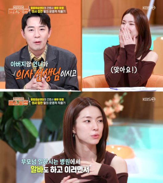 이연복이 “연기하는 데 도움이 많이 됐을 것 같다”고 하자 하영은 “부모님이 일하시는 병원에서 아르바이트를 하면서 분위기를 느꼈던 게 도움이 많이 된 것 같다”고 했다.