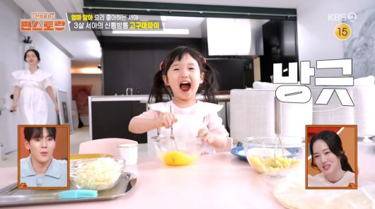엄마와 함께 동생 백일상을 준비하던 서아는 계란을 깨고 휘핑까지 완벽하게 해내 놀라게 했다. 특히 서아는 "삼촌 찍어주세요"라고 요청하며 스타 셰프의 기질까지 드러냈다.