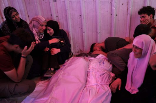 ▲15일(현지시간) 가자지구 북부 베이트라히아 인도네시아 병원에서 주민들이 이스라엘의 자발리아 폭격으로 숨진 이들 곁에서 슬퍼하고 있다. ⓒAFP=연합뉴스 |