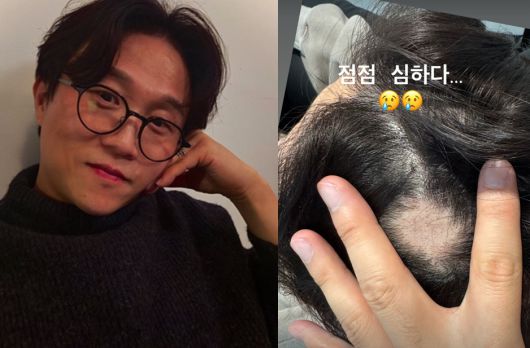 공개된 사진 속에는 정수리 부위가 훤히 드러난 박성광의 두피가 담겨 있어 보는 이들의 안타까움을 자아냈다.