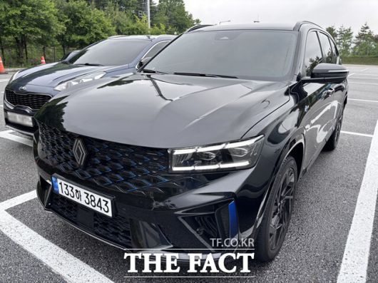 지난 15일 오전 만난 르노 '그랑 콜레오스' 최상위 트림 에스프리 알핀은 세로형 주간주행등(DRL)과 알핀 배지를 강조한 전면부가 강인한 인상을 줬다. /황지향 기자 |