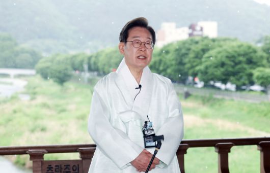 ▲더불어민주당 이재명 대선 후보가 16일 전북 전주시 완산구 청연루에서 열린 K-컬처 '전통의 소리를 잇다-청년 국악인과의 간담회'를 마친 후 취재진과 백브리핑을 하고 있다. ⓒ연합뉴스 |