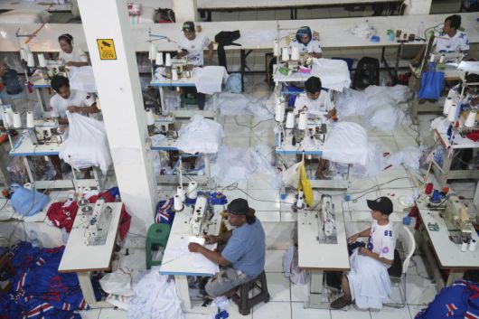 지난 4월30일 인도네시아 자카르타의 섬유 공장에서 T셔츠가 제작되고 있다.AP뉴시스 |
