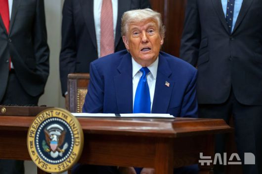 [워싱턴=AP/뉴시스] 17일 이코노미스트는 이처럼 협상이 들쭉날쭉한 상황에 대해 "시간이 지날수록 협상의 절박함은 커지고, 대부분 국가들의 목표는 7월 8일까지 협상 대기줄 맨 뒤로 밀리지 않는 것이 됐다"고 평가했다. 사지은 도널드 트럼프 미 대통령. 2025.05.16. |