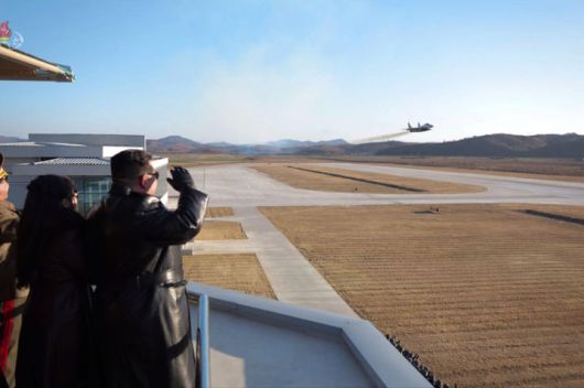 [서울=뉴시스] 옥승욱 기자 = 김정은 북한 국무위원장이 공군 훈련 현장을 방문해 전 부대에게 전쟁준비에서의 획기적 전환 가져와야 한다고 강조했다.