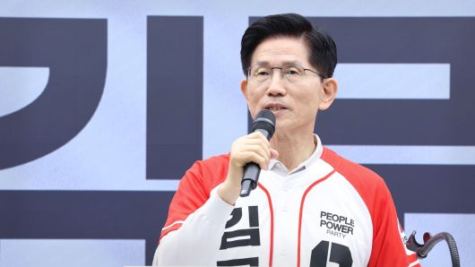 지난 5월 13일 한국노총 부산지역본부가 김문수 후보 지지를 선언했다. 한국노총 출신인 박진수 국민의힘 부산지역 공동선대위원장은 바로 옆에 서 있는 김문수 후보를 ‘선배’라 칭하며 극찬했다.