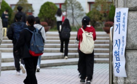 (서울=뉴스1) 이승배 기자 = 2일 오전 서울 강서구 경복비즈니스고등학교에 마련된 공무원 지방직 7급 및 연구·지도직 필기시험장으로 응시생들이 들어가고 있다. 이번 필기시험은 17개 도에 마련된 74개 시험장에서 시행된다. 행정안전부에 따르면 이번 지방직 7급에는 311명 선발에 2만2천39명이 지원해 70.9대 1의 경쟁률을 기록했다. 2024.11.2/뉴스1 Copyright (C) 뉴스1. All rights reserved. 무단 전재 및 재배포, AI학습 이용 금지. /사진=(서울=뉴스1) 이승배 기자 |