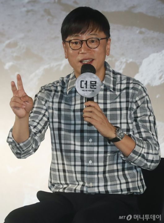 김용화 감독이 27일 오전 서울 CGV용산아이파크몰에서 진행된 영화 '더 문'(감독 김용화) 제작발표회에 참석해 질문에 답하고 있다. 사고로 인해 홀로 달에 고립된 우주 대원 선우와 필사적으로 그를 구하려는 전 우주센터장 재국의 사투를 그린 영화 '더 문'은 8월 2일 개봉한다. /2023.06.27