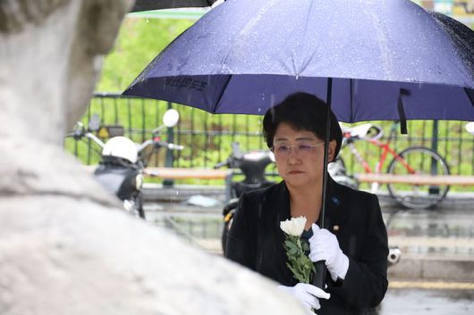 [서울=뉴시스] 조성봉 기자 = 김선민 조국혁신당 대표 권한대행이 1일 오후 서울 종로구 전태일 동상에 헌화화하고 있다. (사진=조국혁신당 제공) 2025.05.01. photo@newsis.com *재판매 및 DB 금지 |