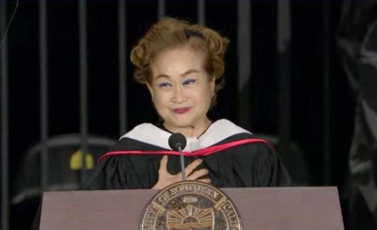 미국 서던캘리포니아대(USC) 졸업식에서 연설한 이미경 CJ그룹 부회장. 사진 USC 스트리밍 중계 화면 캡처 |