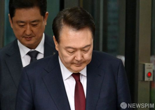 [서울=뉴스핌] 사진공동취재단 = 윤석열 전 대통령이 12일 서울 서초구 중앙지방법원에서 열린 내란 우두머리 혐의, 직권남용 권리행사방해 혐의 사건 3차 공판을 마치고 나오고 있다. 2025.05.12 photo@newspim.com |