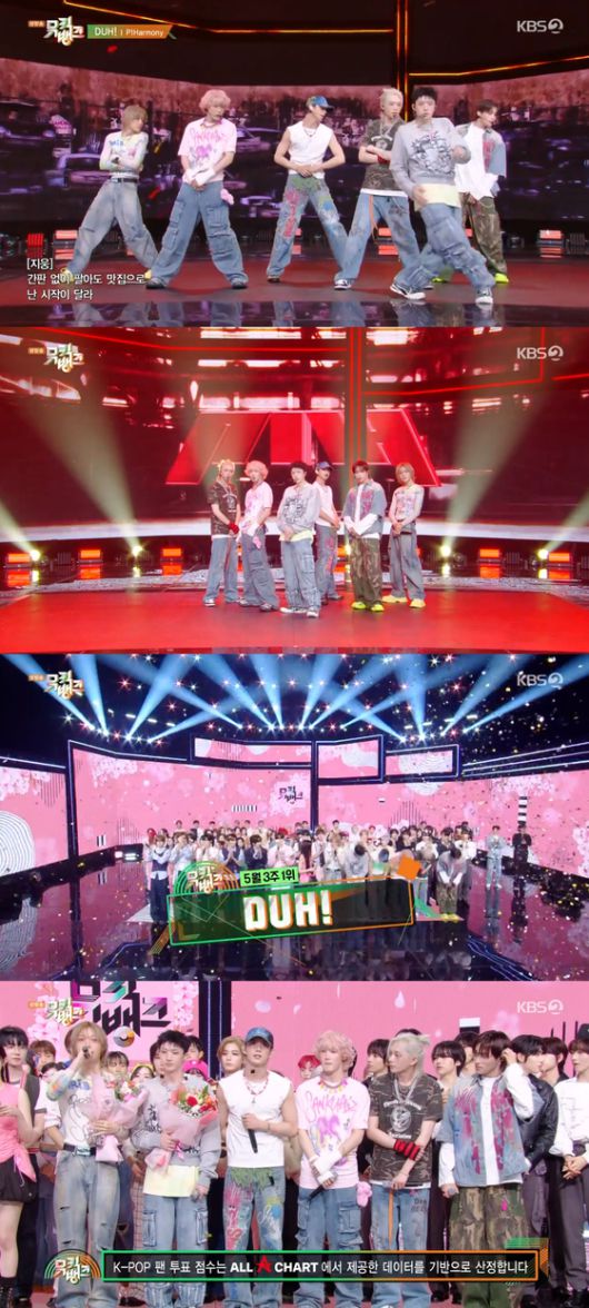 피원하모니는 지난 16일 방송된 KBS 2TV '뮤직뱅크'에서 신곡 '더!'(DUH!)로 1위를 차지했다. 이를 통해 MBC M, MBC every1 '쇼! 챔피언'에 이어 음악방송 2관왕에 등극했다.