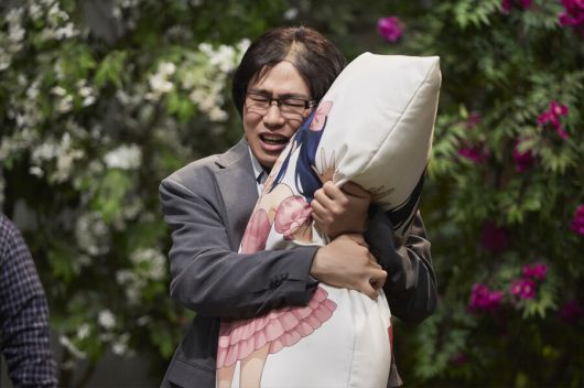 공개된 스틸에는 퍼플 컬러의 가발과 컬러 렌즈, 반짝이는 메이크업을 뽐내는 비주얼 아이돌로 변신한 안재홍이 길거리 팬미팅을 여는 모습부터, 드라마 ‘마스크걸’ 속 ‘주오남’을 셀프 패러디한 파격적인 장면까지 담겨 있다. 특히 탈모 가발을 쓰고 만화 캐릭터가 프린트된 대형 쿠션을 애지중지하는 ‘오타쿠’ 캐릭터로의 메소드 연기는 이번 7화의 웃음 수위를 기대하게 만든다.