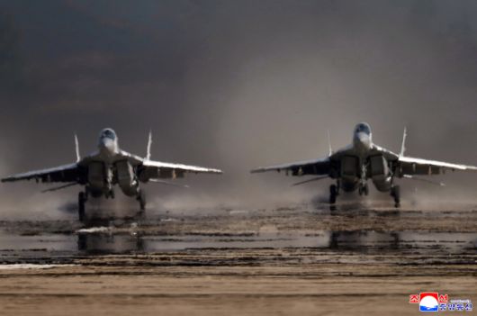 북한 미그-29 전투기에서 신형 공대공 미사일과 활공유도포탄을 발사해 순항미사일과 무인기 표적을 격추하는 훈련이었다.
