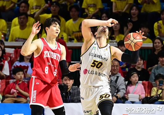 (엑스포츠뉴스 잠실, 박지영 기자) 17일 오후 서울 송파구 잠실학생체육관에서 열린 '2024~2025 KCC 프로농구 챔피언결정전' 7차전 서울 SK 나이츠와 창원 LG 세이커스의 경기, LG 아셈 마레이가 SK 안영준의 파울에 공을 놓치고 있다.박지영 기자 jypark@xportsnews.com