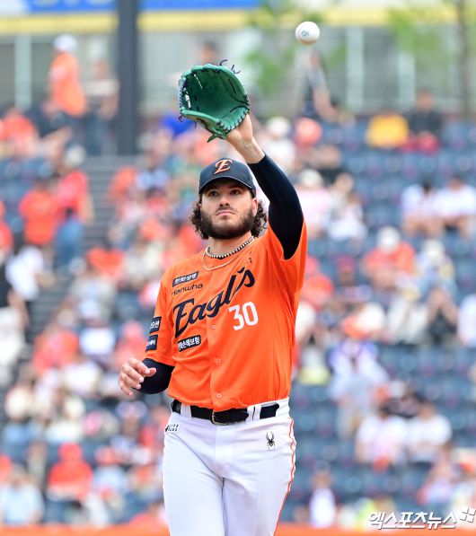 (엑스포츠뉴스 대전, 김한준 기자) 17일 오후 대전 한화생명 볼파크에서 열린 '2025 신한 SOL Bank KBO리그' SSG 랜더스와 한화 이글스의 더블헤더 1차전 경기, 1회초 한화 선발투수 폰세가 투구를 준비하고 있다.김한준 기자 kowel@xportsnews.com