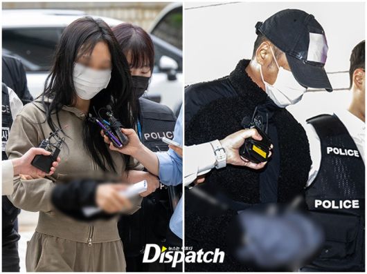 두 사람은 이날 오후 1시 43분께 중앙지법 서관에 도착했다. 경찰이 준비한 차량 2대에서 따로 내렸다. A씨는 마스크로 코와 입을 가렸고, B씨는 마스크와 모자로 얼굴을 감쌌다.