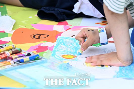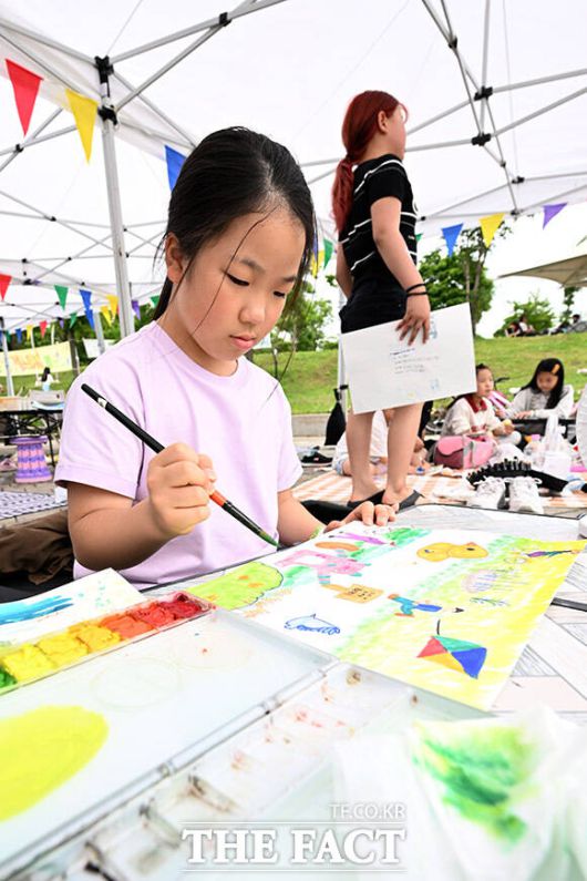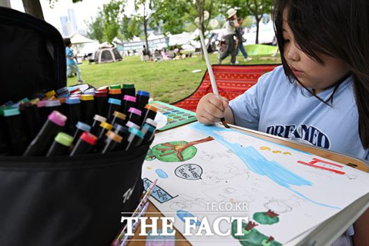 [더팩트ㅣ남용희 기자] '제22회 한강사랑 그림그리기 대회'가 17일 서울 광진구 뚝섬한강공원에서 열린 가운데 참가자 가족들이 그림을 그리며 즐거운 시간을 보내고 있다.